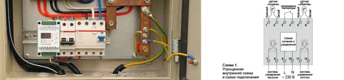 - Der erste Block, der das Executive-Relais einschaltet, befindet sich direkt neben der Heizung und ist mit dem erforderlichen Anschluss verbunden. Stromversorgung - aus 220 Volt Haushaltselektrik.