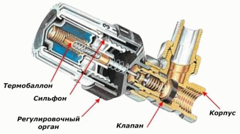 Das gesamte Gerät ist in der Warmwasserversorgungsleitung installiert und erfasst dessen Temperatur. Beim Erhitzen dehnt sich das Arbeitsmedium aus und wirkt auf das Ventil, das sich bewegt und den Durchflussbereich der Leitung blockiert. Wenn das Kühlmittel abkühlt, kehrt das Ventil an seinen Platz zurück.