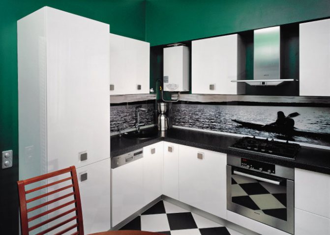 Mit zunehmender Lautstärke nimmt auch die Höhe des Geräts zu: Ein Kessel mit einem Volumen von 80 Litern ist etwa 85 cm lang. Gehe in die Ecke Nicht nur die Farbe, sondern auch die Position tragen dazu bei, die Säule zu verschleiern (vorausgesetzt, Sie erfüllen die Anforderungen für die Platzierung des Geräts). Zum Beispiel schob die Designerin Nastya Antonyuk den Gaswarmwasserbereiter fast in die Ecke der Küche - er ist fast unsichtbar, außer aus einem bestimmten Winkel.Wie werde ich eine Spalte los? "So viele Probleme mit Gas - ich werde das Rohr schweißen, den Elektroherd und den elektrischen Warmwasserbereiter aufsetzen." Theoretisch können Sie das natürlich, wenn Sie bereit sind, große Stromrechnungen zu bezahlen: Sie erhalten keinen ermäßigten Preis wie in einem Haus mit Elektroherden. Auch hier müssen Sie eine Erklärung schreiben und auf die Gasarbeiter warten, die Ihr Rohr schweißen werden. Laut Gesetz kann eine Küche mit einem Gaswarmwasserbereiter nicht Teil eines Wohnraums (Küche-Wohnzimmer) sein. Trotzdem treffen wir viele ähnliche Projekte, bei denen alles anders ist.