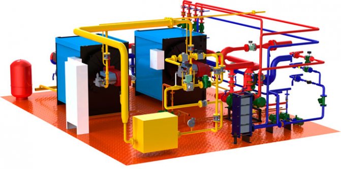 Der komplette Satz eines Heizraums für Flüssiggas und eines gewöhnlichen Heizraums ist buchstäblich nicht anders. Wenn der Kessel mit Flüssiggas betrieben wird, wird der Brennstoff durch die Rohrleitung vom Gasbehälter zum Gerät geleitet.