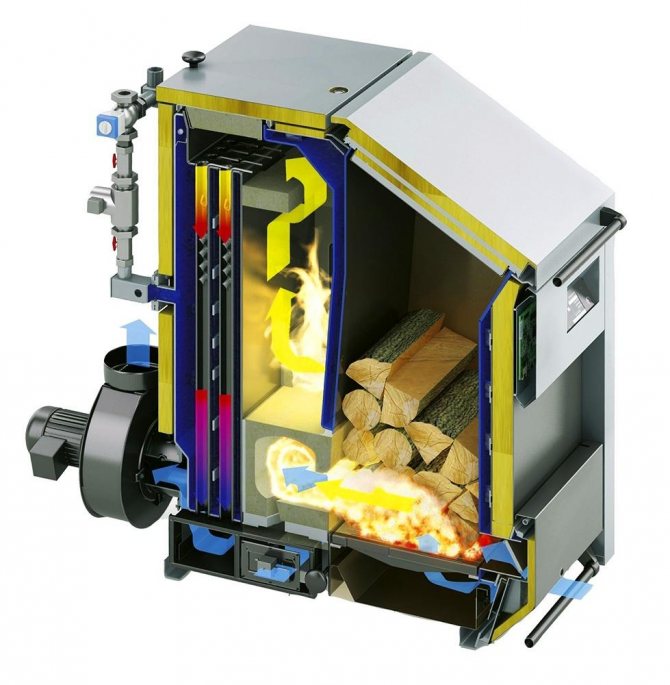 Festbrennstoffkessel mit direkter Verbrennung sind ein klassisches Beispiel für einen Ofen. Ihr Gerät ist sehr einfach. - häufiger handelt es sich um eine Kombination aus einer Brennkammer, einer Aschespeicherkammer und einem Schornstein.