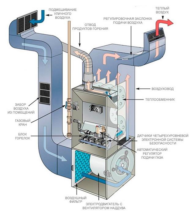 Wie bei einem Einbrennstoffkessel sind die Hauptelemente eines Kombikessels ein Wärmetauscher, ein zuverlässig isoliertes Gehäuse (Minimierung des Wärmeverlusts) und ein automatisches Steuersystem. Für den Haushaltsbedarf wird beim Betrieb in kleinen Räumen die Wahl auf einem Zweikreis-Kessel getroffen, der mit zwei Brennstoffarten betrieben werden kann.