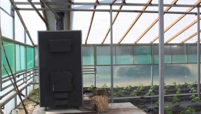 Diese Geräte können sein sowohl Pyrolyse als auch direkte Verbrennung... Die durchschnittliche Betriebszeit eines langbrennenden Pyrolysekessels beträgt ungefähr 8-10 Stunden auf einer Registerkarte. Zur vollen Beheizung des Gewächshauses Zwei Lesezeichen pro Tag reichen aus. Wenn der Kessel ausgeht, zirkuliert die erzeugte Wärme einige Zeit im Raum. Wenn das Gewächshaus isoliert ist, sinkt die Temperatur daher viel langsamer.
