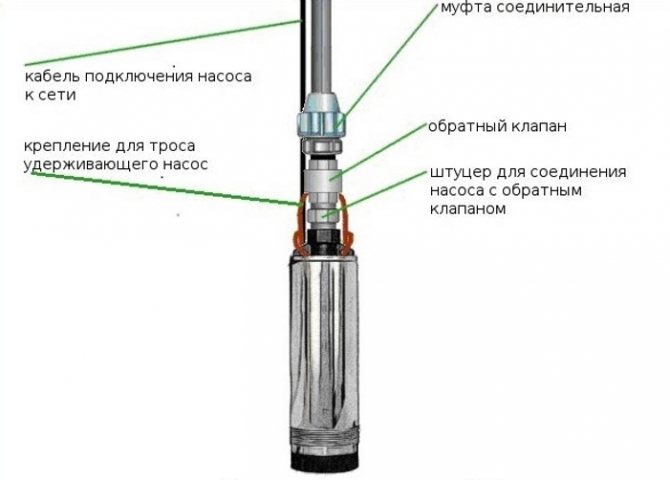 - Am Auslass einer Tauchpumpe, in einen Brunnen oder in einen Brunnen abgesenkt. Wenn die Pumpe ausgeschaltet ist, kehrt das Wasser nicht in die entgegengesetzte Richtung zurück. Einbau eines Rückschlagventils an einer Tauchpumpe