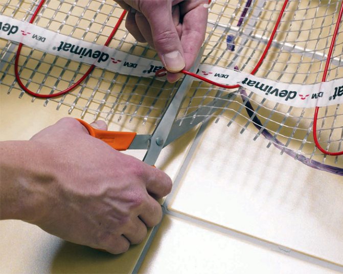 5. Bereits an der entfalteten Matte muss vor dem Spülen (Gießen) der Mischung der Widerstand des Heizkabels überprüft oder die Spannung kurz angeschlossen und die Funktionsfähigkeit überprüft werden. Verwenden Sie bei der Arbeit weiche Schuhe.