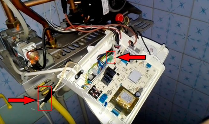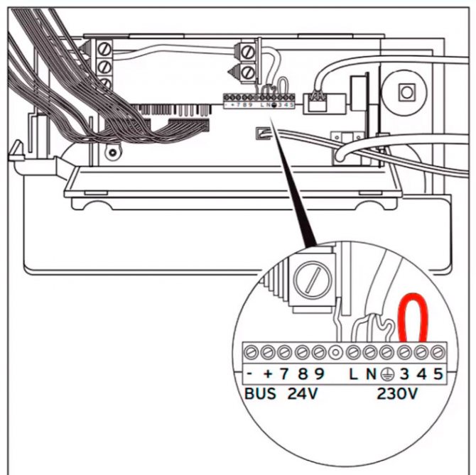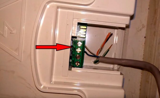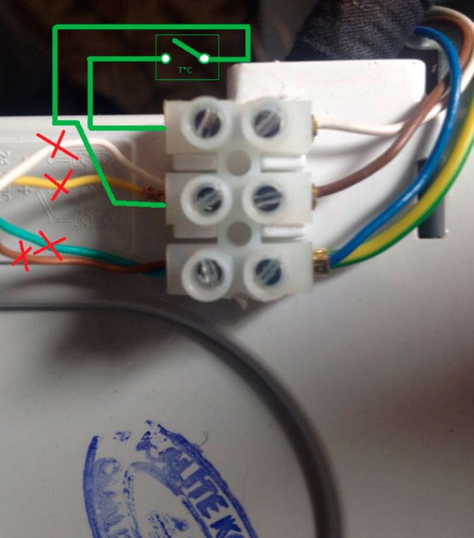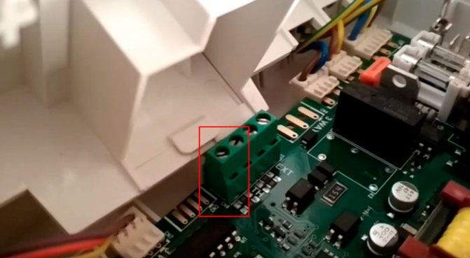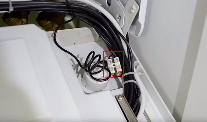 Einige Installateure schließen hier während der Installation ein Kabel an und ziehen es heraus, damit der Verbraucher in Zukunft nicht mehr auf die Platine klettert und dort nichts verwirrt. Da der Thermostat noch nicht installiert ist, sind die Kabelenden kurzgeschlossen.