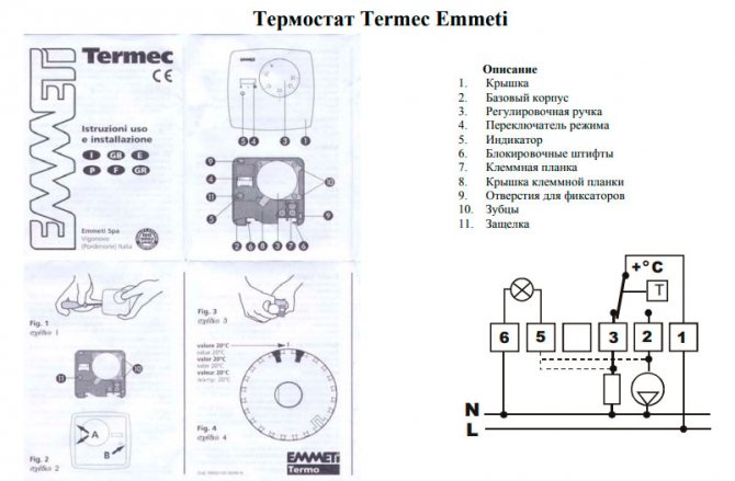 Übrigens können Sie für einen Gaskessel einen anderen einfachen Reglertyp verwenden, der nicht einmal mit einer Spannung von 220 V versorgt werden muss. Zum Beispiel der mechanische Thermostat Termec Emmeti oder andere ähnliche Modelle.