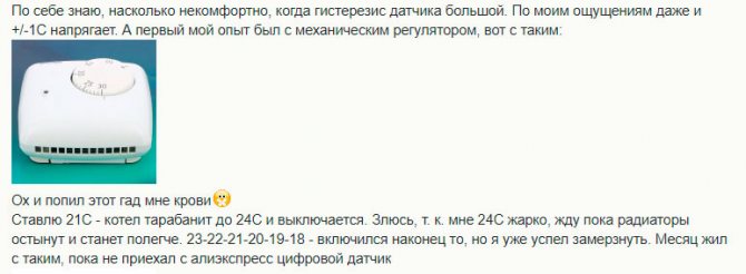 Denken Sie daran, dass fast alle mechanischen Modelle eine sehr große Hysterese haben. Sie können mit ihrer Hilfe keine angenehme Raumtemperatur erzeugen.