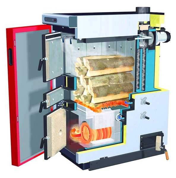 Zur Luftzufuhr wird ein spezieller Gebläseventilator verwendet, der anstelle eines Standardtors oder in einem separaten Sitz installiert wird. Nur durch die Steuerung des Gebläses werden der Verbrennungsprozess des Kessels und die Aufbereitung des Kühlmittels vollständig gesteuert, was die Automatisierung des Betriebs von Festbrennstoffkesseln erheblich vereinfacht.