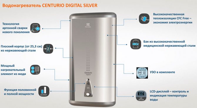 Überhitzungsschutzklasse ist verfügbar. Hersteller haben unter anderem die Funktionen "Fast" und "Eco" bereitgestellt. Die Form des Tanks ist flach, so dass er wenig Platz an der Wand einnimmt. Die Wärmeverlustanzeige ist klein. All dies ermöglicht es Ihnen, viel Strom zu sparen.Von den Merkmalen kann das Autodiagnosesystem unterschieden werden. Bei der geringsten Störung schaltet sich der Warmwasserbereiter von selbst aus.