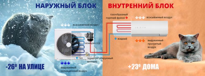 Auch hier gibt es Stärken. Erstens die geringen Kosten des Kühlmittels. Es besteht die Möglichkeit, dass Sie nicht auf ein Leck in der Luftleitung stoßen. Zweitens ist die Wirksamkeit einer solchen Lösung im Frühjahr-Herbst-Zeitraum extrem hoch. Im Winter ist es unpraktisch, eine Luftwärmepumpe zu verwenden, deren Funktionsprinzip wir berücksichtigt haben.
