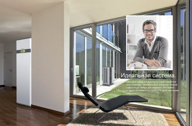 - Komfort. Der Betrieb der Pumpe ist leise, Gemütlichkeit und Komfort im Haus tragen zur Schaffung einer Klimatisierung und eines automatischen Systems bei, dessen Betrieb von den Wetterbedingungen abhängt.