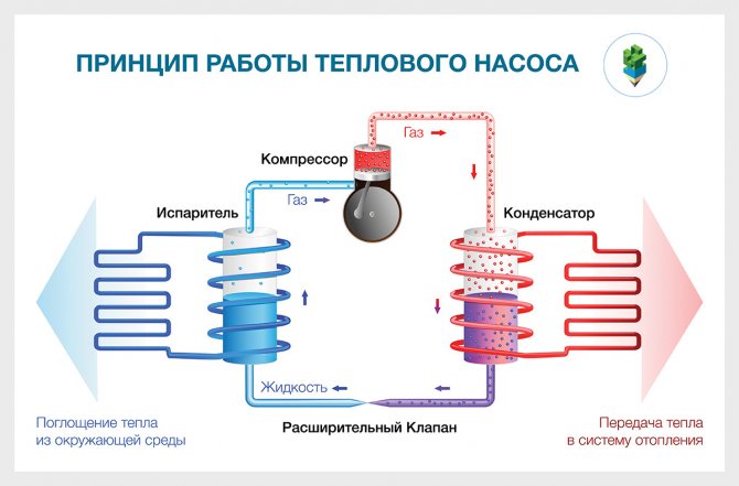 Das Funktionsprinzip einer Wärmepumpe zum Heizen basiert auf der Nutzung der Potentialdifferenz der Wärmeenergie. Deshalb können solche Geräte in jeder Umgebung eingesetzt werden. Die Hauptsache ist, dass seine Temperatur mindestens 1 Grad Celsius beträgt.