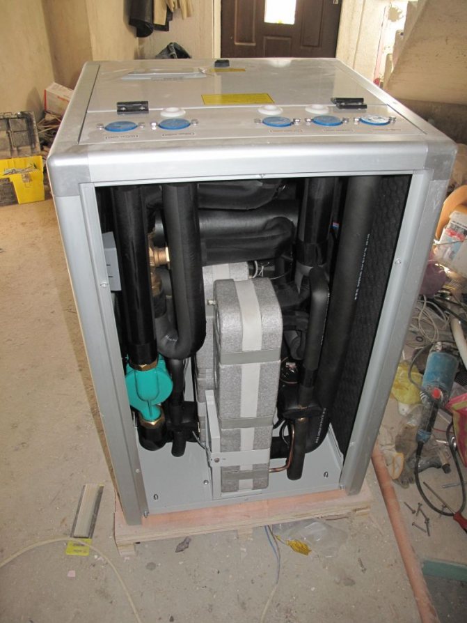 Das System wird auf dem Dach des Gebäudes oder an einem anderen geeigneten Ort platziert. Es ist erwähnenswert, dass dieses Design ein bedeutendes Plus hat. Es besteht in der Möglichkeit, Abgase zu verwenden, Luft, die den Raum wieder verlässt. Dies kann die unzureichende Kapazität der Geräte im Winter ausgleichen.