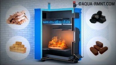 Das einfachste Heizkesselgerät für feste Brennstoffe verfügt über klassische Modelle. Sie bestehen aus einer Brennkammer, einer Aschenwanne, einem Wärmetauscher und einem Kamin. Die Übertragung von Wärmeenergie auf Wasser erfolgt aufgrund der Verbrennung von Brennstoff im Ofen.