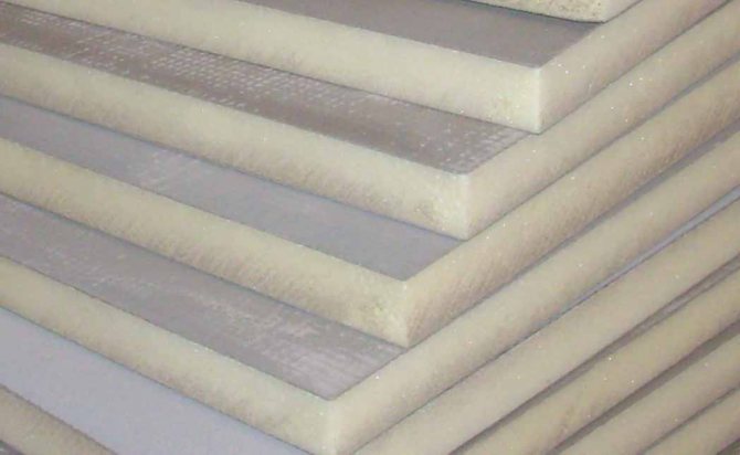 Dies ist extrudierter folienbeschichteter Polystyrolschaum, der in einem weiten Bereich von Dicken hergestellt wird. Der letztere Parameter kann von 10 bis 100 mm variieren.Die Isolierung wird für Innentrennwände, Fußbodendecken, betriebene Dächer, Fußböden, Decken, Bäder, Saunen, Heizsysteme, Kühlkammern und Lieferwagen verwendet. Es manifestiert sich perfekt in der Bildung von wärmereflektierenden Schichten von Heizgeräten.