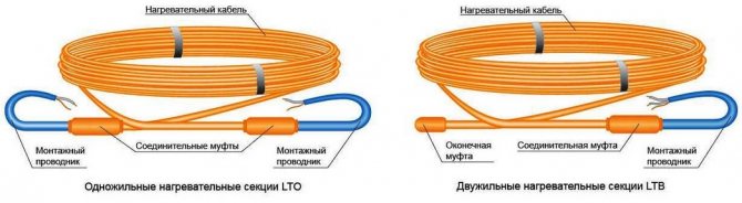 Selbstregulierendes Kabel im Betriebsmodus ändert seinen Widerstand mit Temperaturabfällen. Der Widerstandswert des Widerstandskabels ist temperaturunabhängig. Wenn die Arbeiten an der Installation des Kabels in Übereinstimmung mit allen Anforderungen und Empfehlungen durchgeführt werden, wird das Kabel nicht durch die Temperatur beschädigt. Die Hauptanforderung für die Kabelverlegung ist eine bestimmte Zeitspanne. Wenn sich herausstellt, dass das Kabel während der Verlegung lang ist, sollte es nicht gekürzt werden, da dies zu einer Änderung der Stromeigenschaften und der Erwärmung führt, was zur Zerstörung der Isolierung führt. In der Praxis werden am häufigsten zwei Arten von Heizkabeln verwendet: