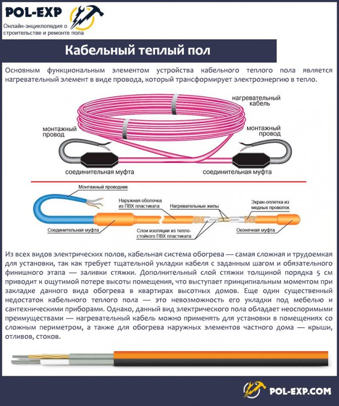 Nach dem Funktionsprinzip kann das Kabel beim Bau eines warmen Bodens sein: