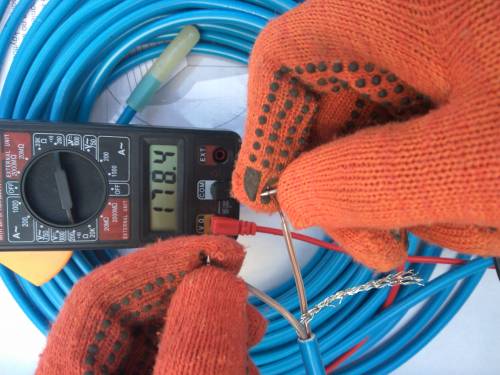 Um den Zustand des Heizkabels zu überprüfen, muss sein Widerstand mit einem Multimeter gemessen werden.
