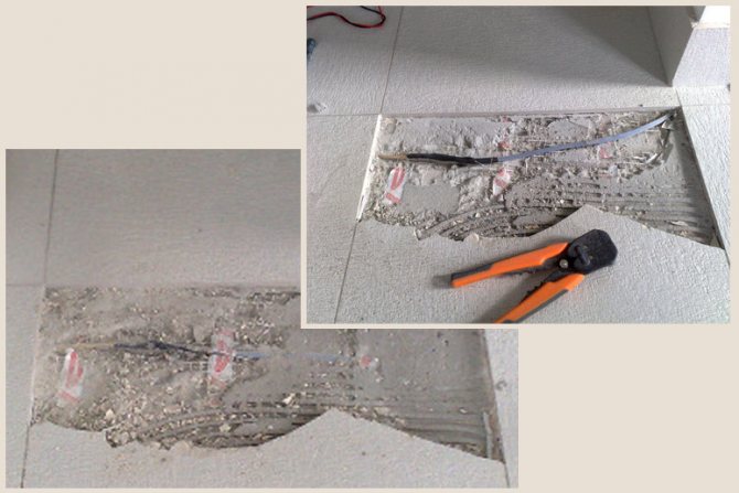 Die parallele Anordnung von 2 getrennten Adern des Kabels ist ebenfalls in einem Estrich montiert, unterscheidet sich jedoch vom vorherigen Kabel dadurch, dass seine Länge ohne Angst vor Isolierung geändert werden kann.