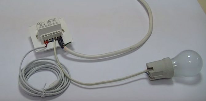 Schritt 1. Der Thermostat ist gemäß allen Regeln mit dem Netzwerk verbunden. Das heißt, das Phasendraht ist mit Klemme L verbunden, und das Nullkabel ist mit Klemme N verbunden. Der Temperatursensor und eine gewöhnliche Glühbirne, die in die Fassung eingeschraubt sind, sind ebenfalls angeschlossen. Es wird eine Lastanzeige sein.