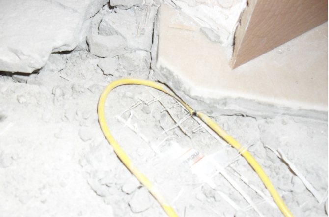 Ein einzelnes zweiadriges Kabel ist ein einseitig eingestecktes Drahtgeflecht. Ein solches Kabel ist in einem Betonestrich montiert. Die Auswahl des Netzes erfolgt streng nach dem Raumbereich, frei von Wasserleitungen und Möbeln, da es nicht geschnitten werden kann.