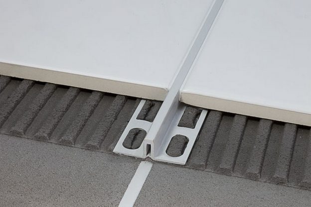 - Kalibrierelemente in Form kleiner Kreuze werden zwischen den Fliesen installiert.