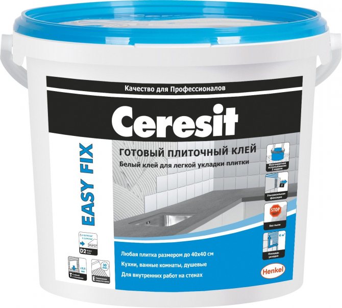 Dünnschichtkleber wird für Fliesen verwendet. Es wird mit einer Tiefe von 1-2 cm gelegt. Die Mischung härtet schnell aus und trocknet. Der Nachteil ist die Hygroskopizität der Zementoberfläche.