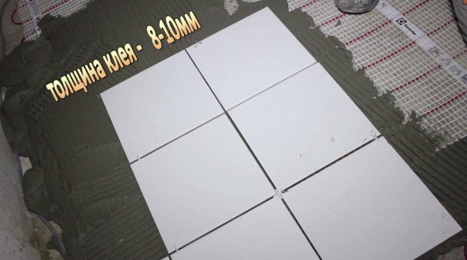 - Wenn die Fliesen auf Matten des thermischen Systems gelegt werden, muss die Zusammensetzung des klebenden Rohmaterials berücksichtigt werden, da die chemischen Bestandteile der Lösung das Netz zerstören können. Daher wird eine vorläufige Schutzbeschichtung aufgebracht.