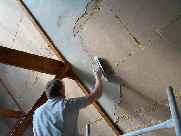 Holzoberflächen sind ebenfalls mit Putz isoliert. Eine wichtige Nuance ist, dass eine Kiste zuerst an einer Holzwand fertiggestellt werden muss, bevor dann die Putzzusammensetzung aufgetragen wird.