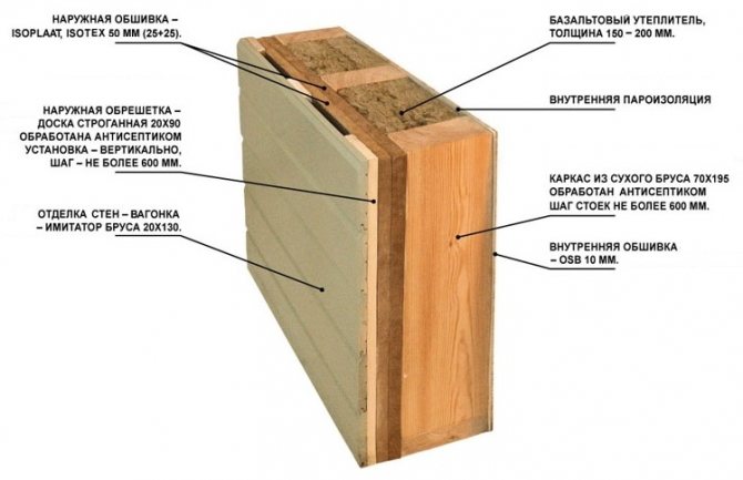 Eine weitere Option ist die Installation von 25-mm-Faserplatten in zwei Schichten mit überlappenden Fugen. Der Vorteil solcher Platten besteht darin, dass sie nicht nur die Rolle der Isolierung, sondern auch des Windschutzes spielen.Eine Isolationsschicht über den Racks verhindert auch das Einfrieren der Wand, das durch einen menschlichen Faktor verursacht wird: lose Verbindungen der Wärmedämmung mit dem Rahmen.