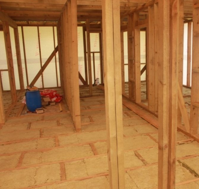 Der Bau von Fachwerkhäusern beginnt mit der Installation eines Tragrahmens (natürlich gibt es bereits ein Fundament) aus Holzbalken. Zwischen den Trägern befinden sich Wärmedämmplatten aus Glas oder Steinfasern.Es ist wichtig zu wissen, dass die Faserisolierung Angst vor Feuchtigkeit hat. Nass werden verringert die Wärmedämmeigenschaften. Infolgedessen wird mehr Wärme verwendet, um das Haus zu heizen. Wenn die Isolierung nass wird, verringert sich auch die Betriebsdauer.