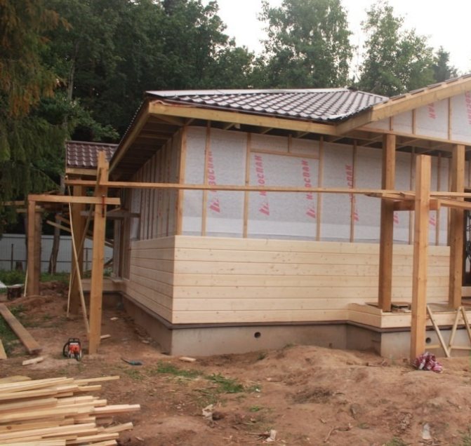 Draußen wird die Isolierung mit einer Windschutzscheibe verschlossen, dann wird ein Gegengitter an die Pfosten genagelt, das einen Belüftungsspalt bietet und die Grundlage für die Endbearbeitung bildet. Es ist notwendig, einen Luftspalt zwischen der Dämmung und der Außenbeschichtung zu lassen, um Wasserdampf von der Wandstruktur zu entfernen, um Kondensation zu vermeiden und infolgedessen die Dämmung und den Holzrahmen zu befeuchten.