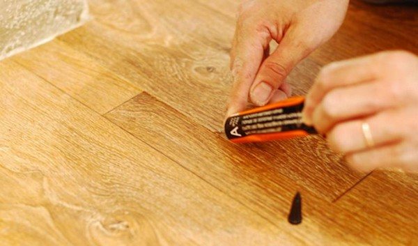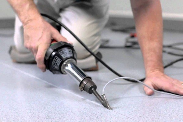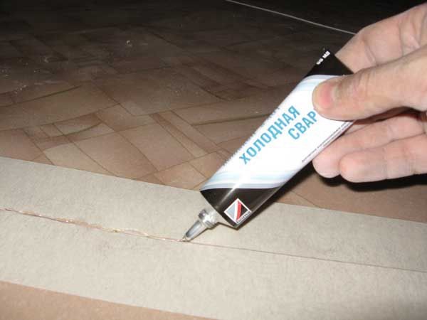 Für die Installation von Linoleum wird Spezialkleber verwendet
