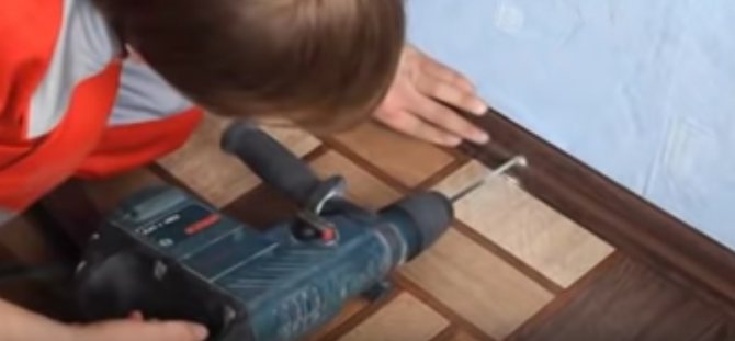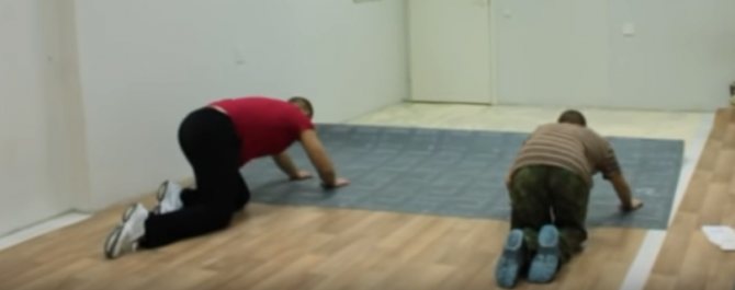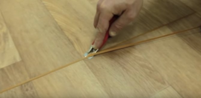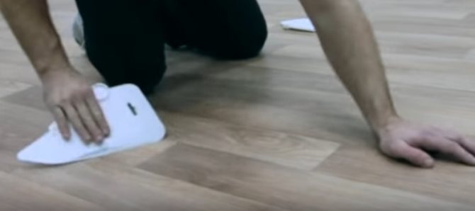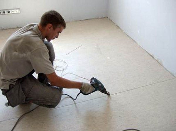 Der Prozess des Verlegens von Linoleum mit Pfahl