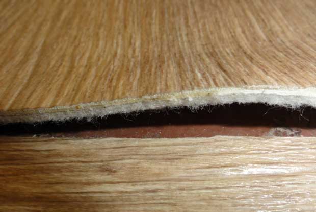 - unzureichende Festigkeit der Oberflächenschicht, es ist ziemlich anfällig in Bezug auf mechanische Beanspruchung. Zum Beispiel gibt es offensichtliche Fersenmarkierungen auf einer solchen Beschichtung. Falls erforderlich, empfehlen wir Ihnen, die Option des Erwerbs einer homogenen Art in Betracht zu ziehen.