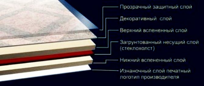 - Die dritte Schicht ist Polyvinylchlorid. Dank dieser Beschichtung hat die Beschichtung eine Weichheit und die Fähigkeit, Geräusche zu isolieren.