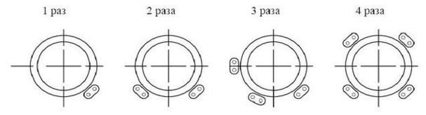 Wenn Sie jedoch mehrere Leitungen gleichzeitig entlang einer Pipeline verlegen möchten, tun Sie dies in strikter Übereinstimmung mit den folgenden Abbildungen.
