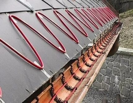 Die Drähte werden in besonderer Weise an den Dachkanten, in Tabletts und Dachrinnen, in Fallrohren befestigt. Sie verhindern die Bildung von Eis, das Entwässerungssysteme zerstört