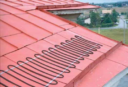 Durch sorgfältige Installation des Heizkabels bleiben die Dachrinnen und Rohre offen, sie frieren jedoch nicht ein, wenn die Temperatur sinkt. Dies ist häufig erforderlich, wenn ein Metalldach ohne Füll- oder Isolierfolie verwendet wird.