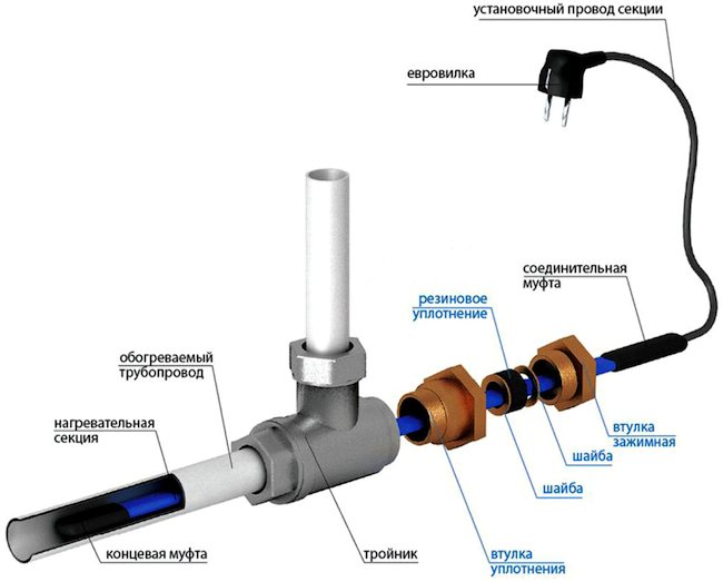 Die Verwendung eines Heizkabels für jede Wasserversorgung, die die Straße entlang verläuft, ist erforderlich. Damit sind jedoch viele Probleme verbunden, von denen eines die Fragilität ist. Daher verwenden sie sehr oft, wenn Rohre flach im Boden verlegt werden, eine Dichtung in den Rohren.