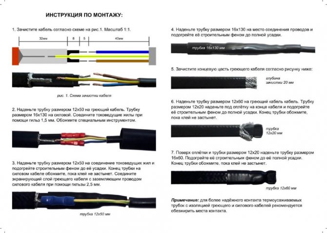 Angesichts der Tatsache, dass Sie jetzt nur die Verwendung eines Heizkabels untersuchen, müssen wir uns mit einem anderen wichtigen Punkt der Arbeit vertraut machen - der Isolierung des Endes des Produkts. Zu diesem Zweck wird ein spezielles wärmeschrumpfbares Rohr verwendet, das die Leiter zuverlässig vor den schädlichen Auswirkungen von Feuchtigkeit schützen kann. Damit das Gerät funktioniert, muss sein Heizteil mit dem so genannten "kalten" Teil verbunden sein. In den folgenden Videos erfahren Sie mehr über alle Phasen dieses Verfahrens.
