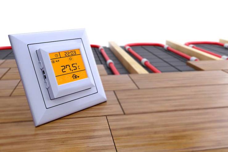 Sobald vom Sensor ein Signal über einen Temperaturabfall empfangen wird, aktiviert der Thermostat die Systemleistung erneut durch Stromversorgung. Der Boden beginnt sich wieder aufzuwärmen. Am beliebtesten sind zuverlässige mechanische und einfache elektronische Geräte. Elektronisch programmierbare Thermostate gelten als komplexer. Unterschiede in den Konstruktionsmerkmalen wirken sich jedoch nicht besonders auf den Anschlussplan des Warmbodens zum Thermostat und zum Stromnetz aus.