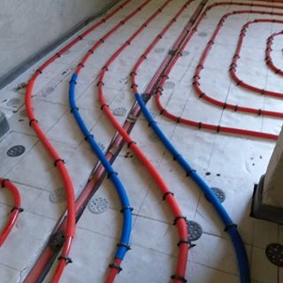 Verlegen von Rohren Fußbodenheizung "Schnecke"