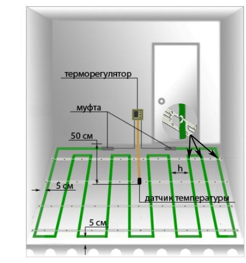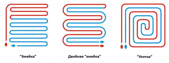 Der Materialverbrauch und die Wärmemenge im Raum hängen von der Installationsmethode ab. Es gibt drei grundlegende Techniken zum Verlegen von Rohren auf dem Boden: