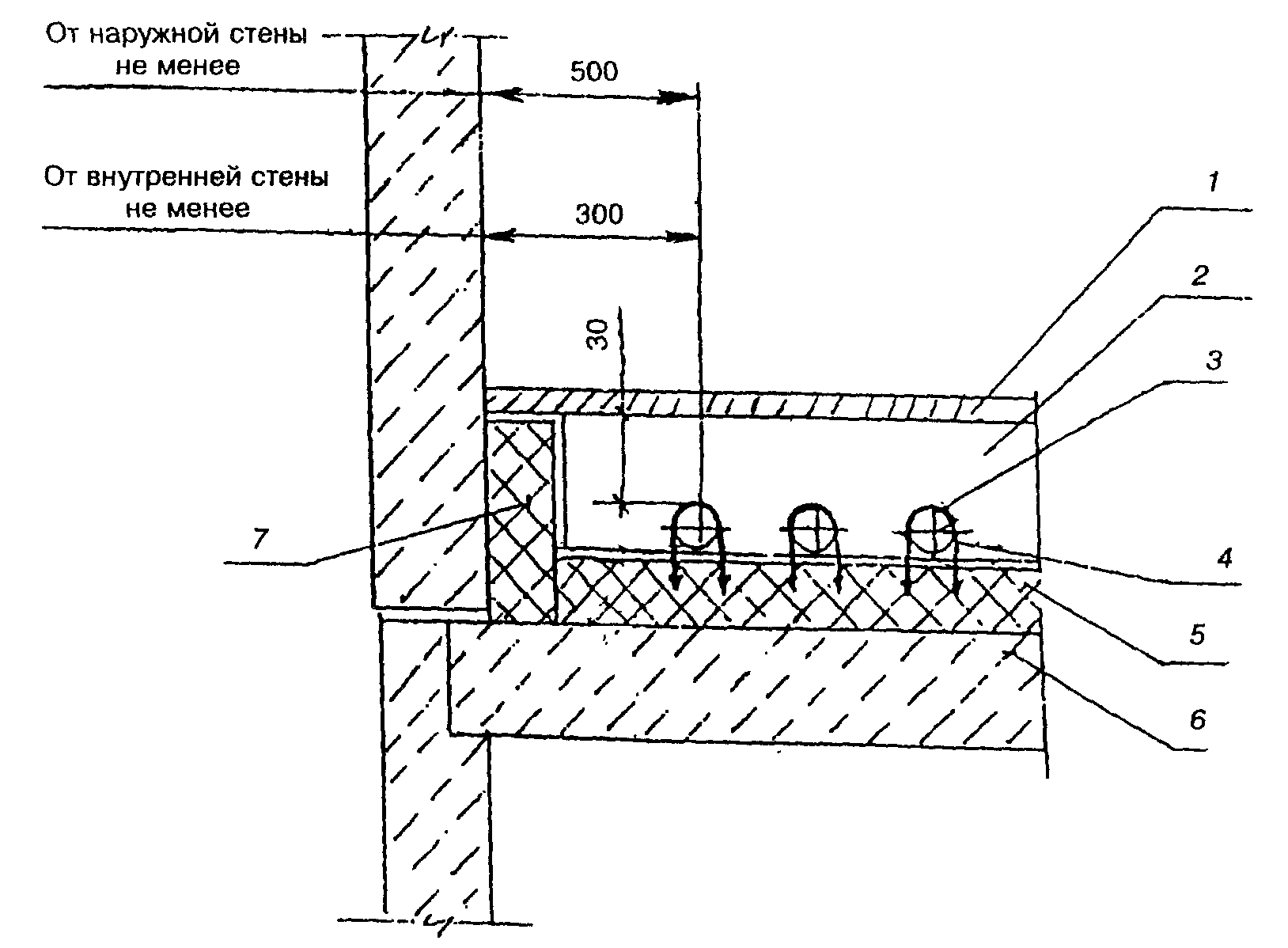 - Wenn der Wärmeverlust weniger als 50 W / m² beträgt, kann der Installationsabstand in der Kontur 30 cm betragen.