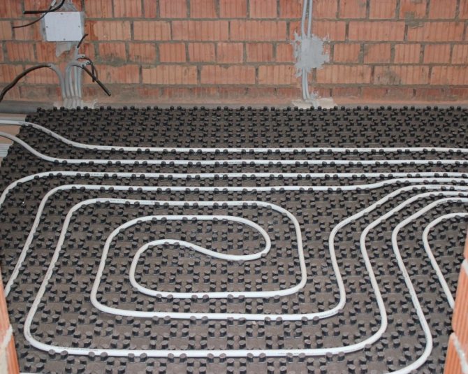 Eine weitere effektive Installationsmethode ist "Polystyrol". In diesem Fall erfolgt die Installation auf wärmereflektierenden Platten.Spezielle Matten mit Rillen und Riegeln dienen als Basis für die Verlegung des Rohres.