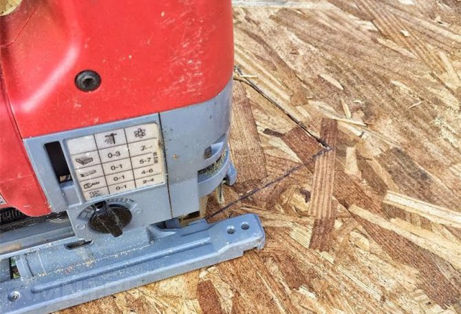 OSB-Platten werden in der Regel mit einer Stichsäge geschnitten. Es ist besser, die Schnittnaht an die Wand zu richten, da die Fabrikenden immer noch glatter sind als die von ihnen selbst abgeschnittenen.