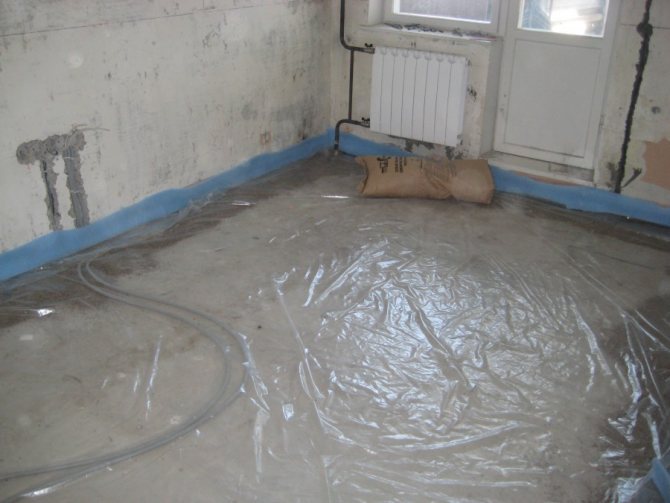Wenn der Boden direkt auf dem Boden verlegt wird, verwenden Sie eine spezielle Antikondensationsfolie oder -folie.