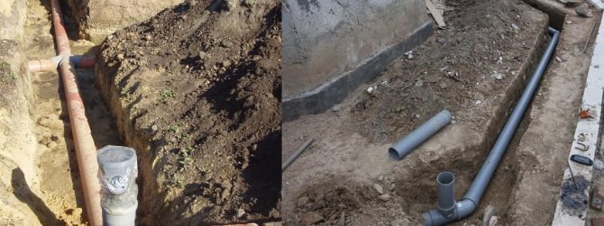 - Die Gräben werden so gegraben, dass eine optimale Neigung der Rohre gewährleistet ist. In diesem Fall ist die Tiefe der Kanalisation nicht standardisiert, sondern wird anhand der örtlichen Gegebenheiten bestimmt.